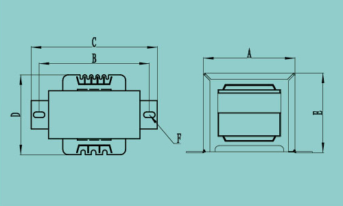 | 功率 | 骨架Bmax | 铁芯尺寸(mm) | 外型尺寸 长(B)*宽(D)*高(E) |