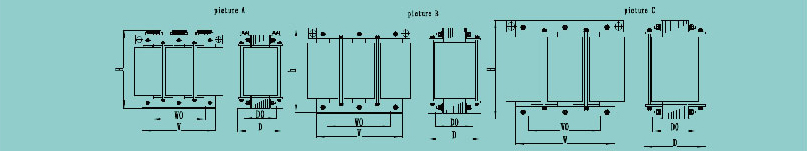 三相隔离变压器型号 图号 逆变器功率(KW) 额定输出电流(A) 三相输入电压 三相输出电压 变压器效率 重量